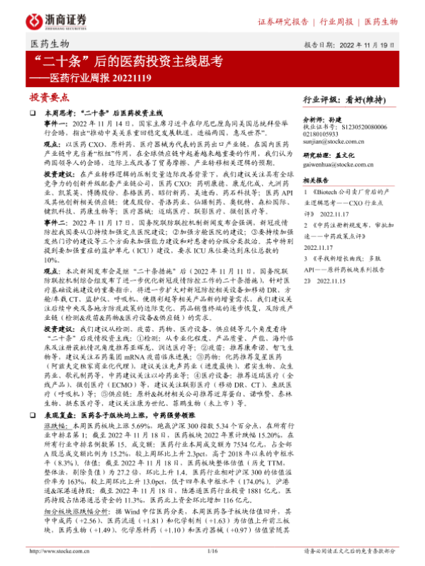 【浙商证券】【20221119】“二十条”后的医药投资主线思考-16页
