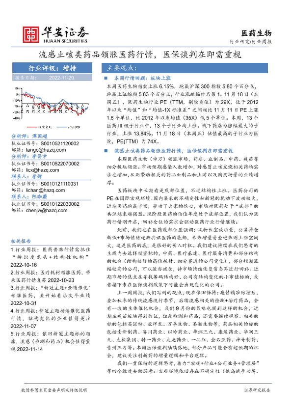 【华安证券】【20221120】医药生物行业周报:流感止咳类药品领涨医药行情,医保谈判在即需重视-14页