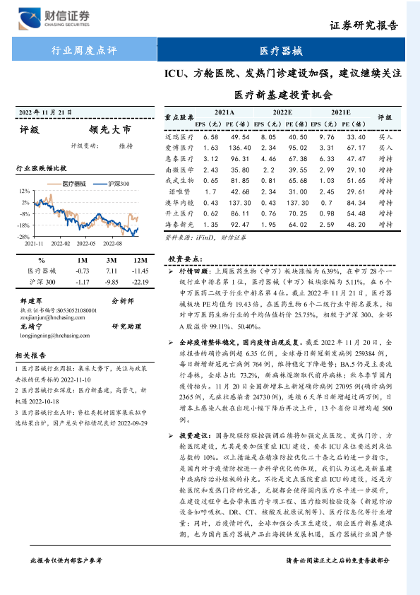 【财信证券】【20221121】医疗器械行业周度点评:ICU、方舱医院、发热门诊建设加强-12页