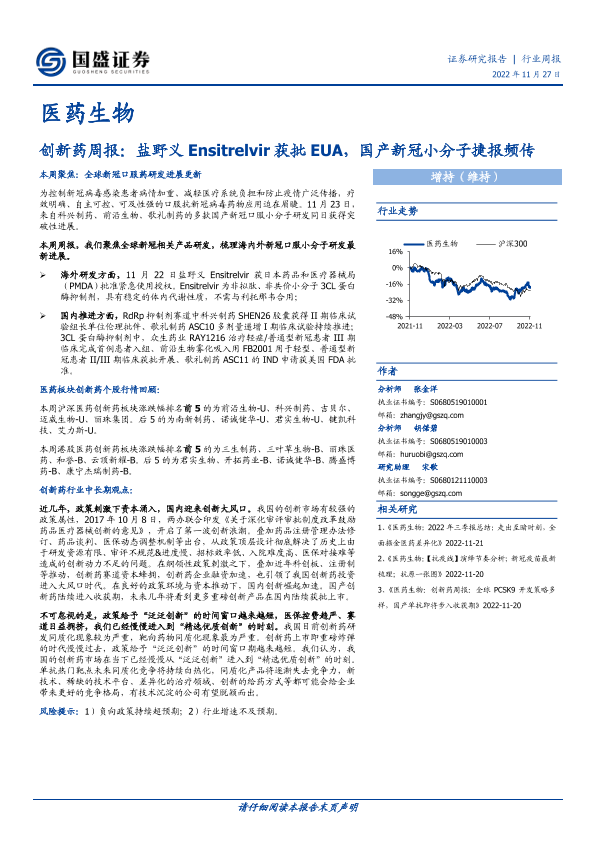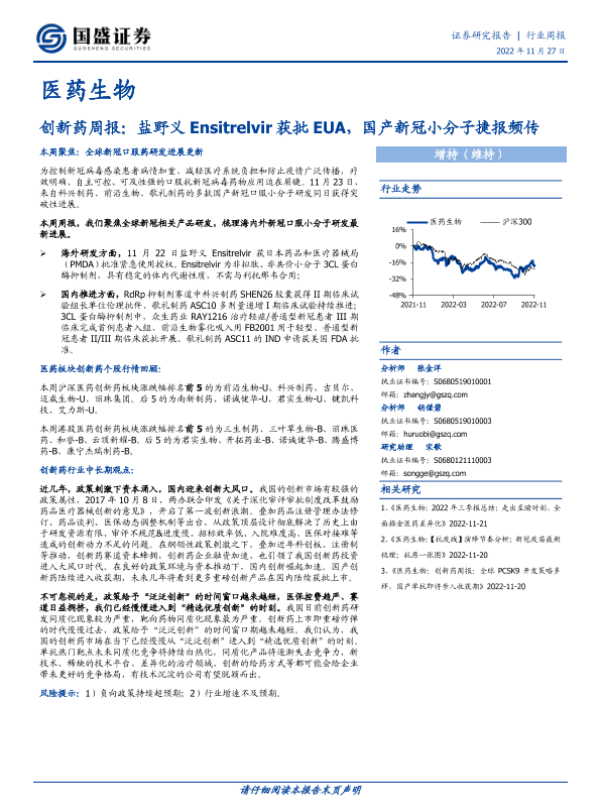 【国盛证券】【20221127】创新药周报:盐野义Ensitrelvir获批EUA,国产新冠小分子捷报频传-13页