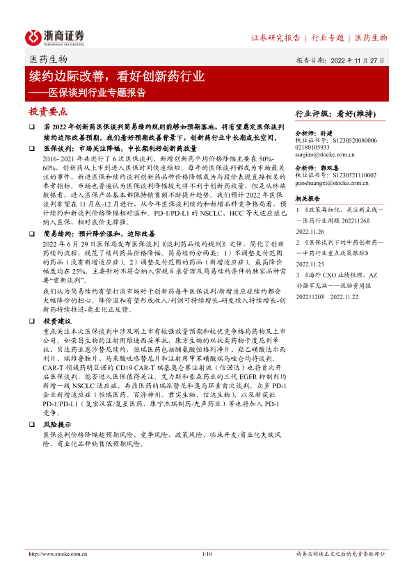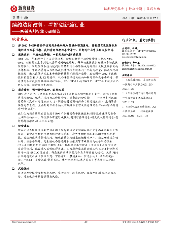【浙商证券】【20221127】医保谈判行业专题报告:续约边际改善,看好创新药行业-10页