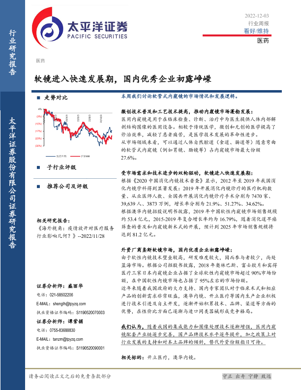 【太平洋证券】【20221203】医药行业周报:软镜进入快速发展期,国内优秀企业初露峥嵘-19页