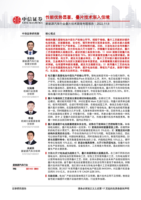 【中信证券】【20221108】新能源汽车行业叠片技术路线专题报告:性能优势显著,叠片技术渐入佳境-18页