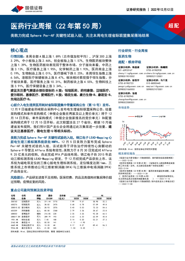 【国信证券】【20221212】医药行业周报:美敦力完成Sphere Per-AF关键性试验入组,关注本周电生理省际联盟集采落地结果-12页