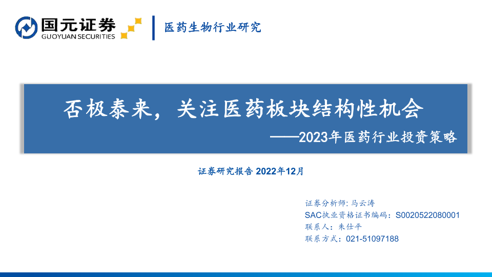 【国元证券】【202212】2023年医药行业投资策略:否极泰来,关注医药板块结构性机会-85页