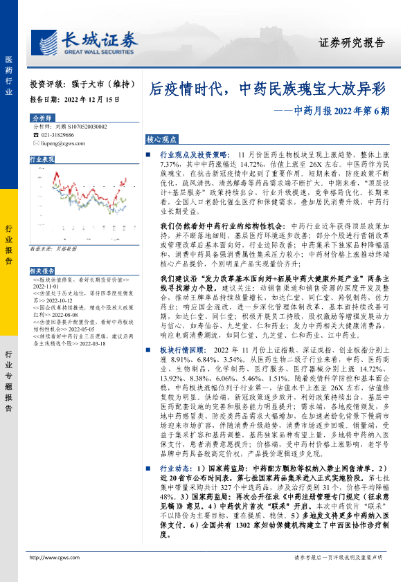 【长城证券】【20221215】后疫情时代,中药民族瑰宝大放异彩-13页