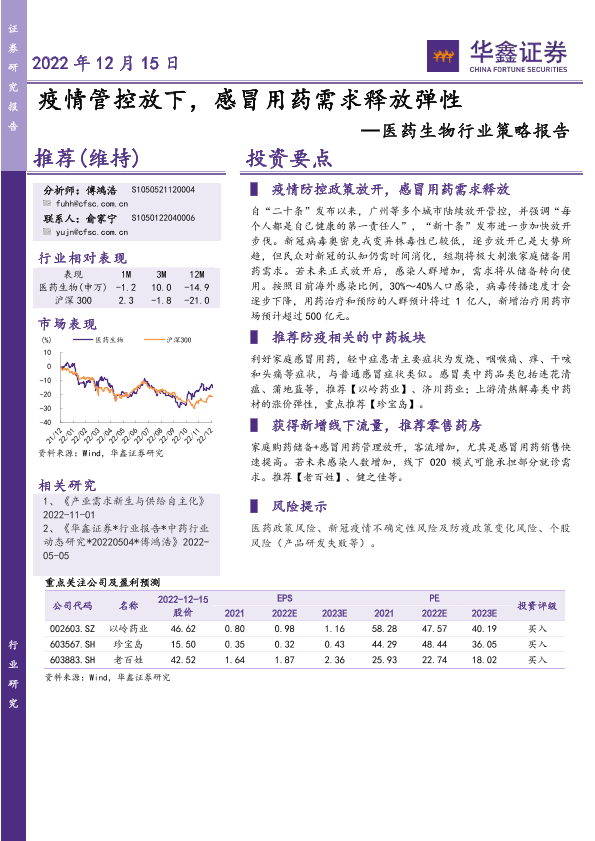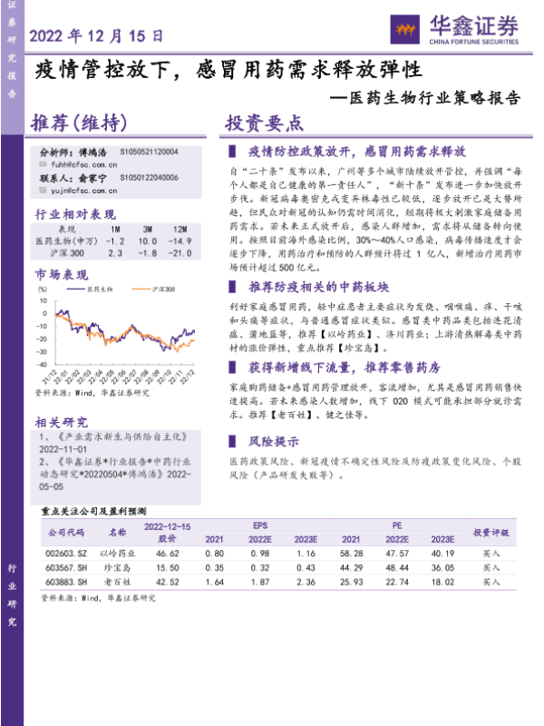 【华鑫证券】【20221215】疫情管控放开,感冒用药需求释放弹性-15页