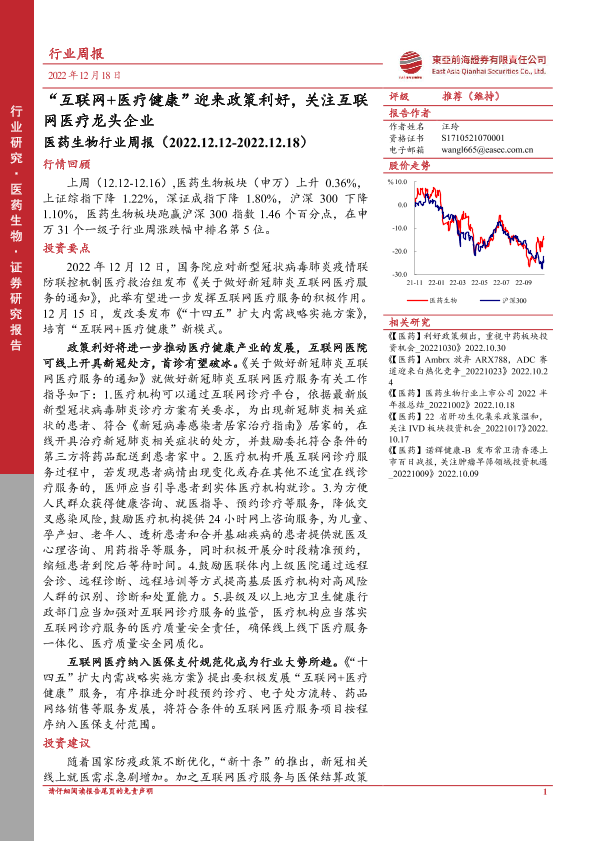 【东亚前海证券】【20221218】“互联网+医疗健康”迎来政策利好,关注互联网医疗龙头企业-13页