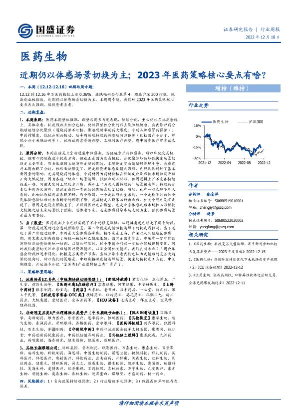 【国盛证券】【20221218】医药生物行业周报:近期仍以体感场景切换为主;2023年医药策略核心要点有啥?-27页