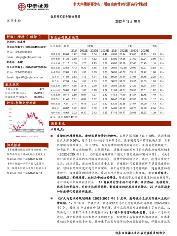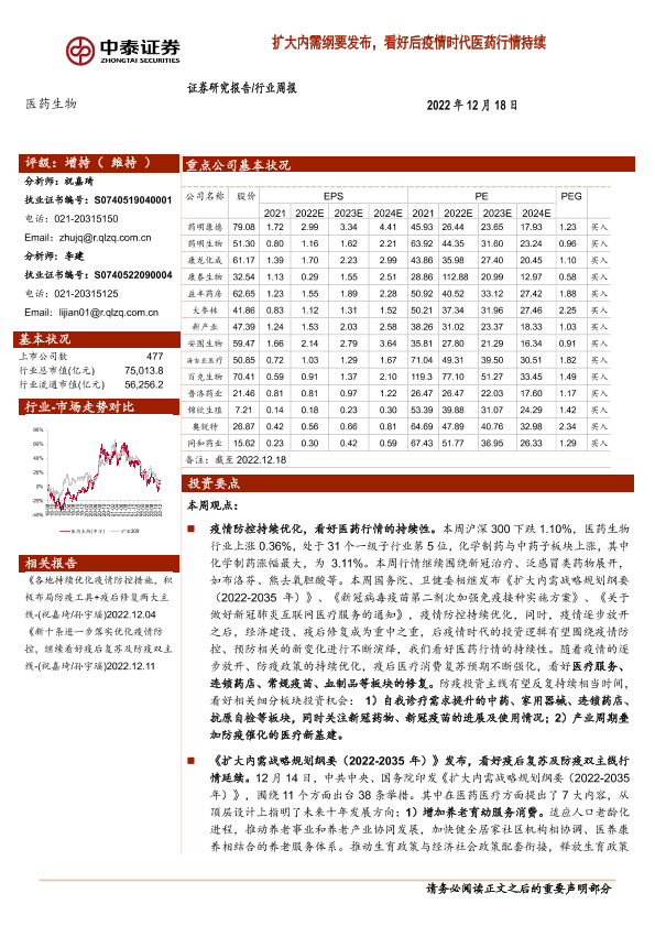 【中泰证券】【20221218】扩大内需纲要发布,看好后疫情时代医药行情持续-10页