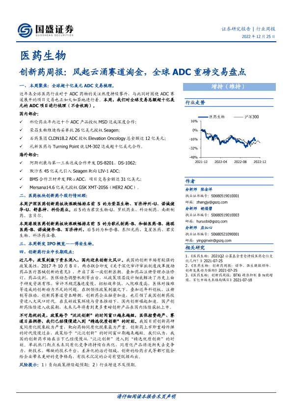 【国盛证券】【20221225】创新药周报:风起云涌赛道淘金,全球ADC重磅交易盘点-16页