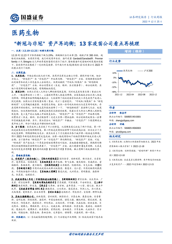 【国盛证券】【20221225】医药生物行业周报:“新冠与非冠”资产再均衡;13家疫苗公司看点再梳理-24页