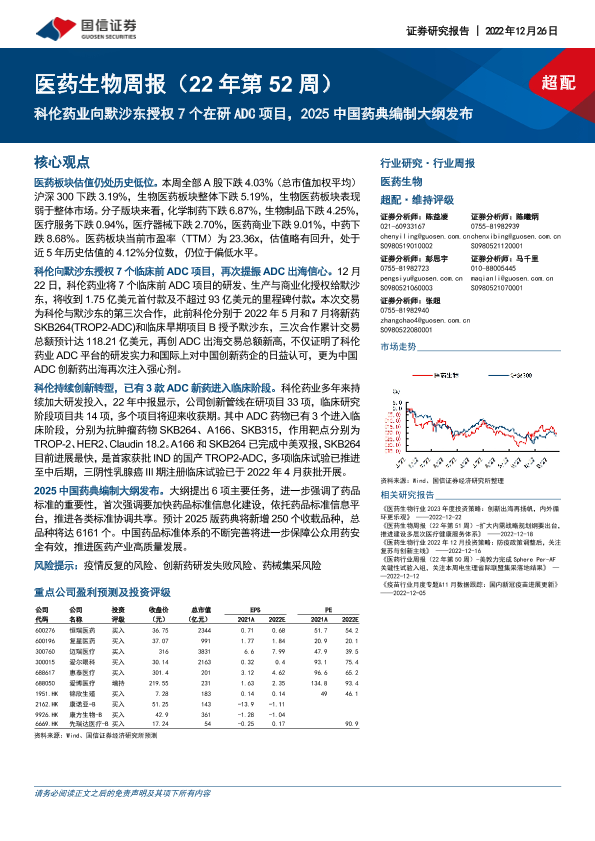 【国信证券】【20221226】医药生物周报:科伦药业向默沙东授权7个在研ADC项目,2025中国药典编制大纲发布-16页