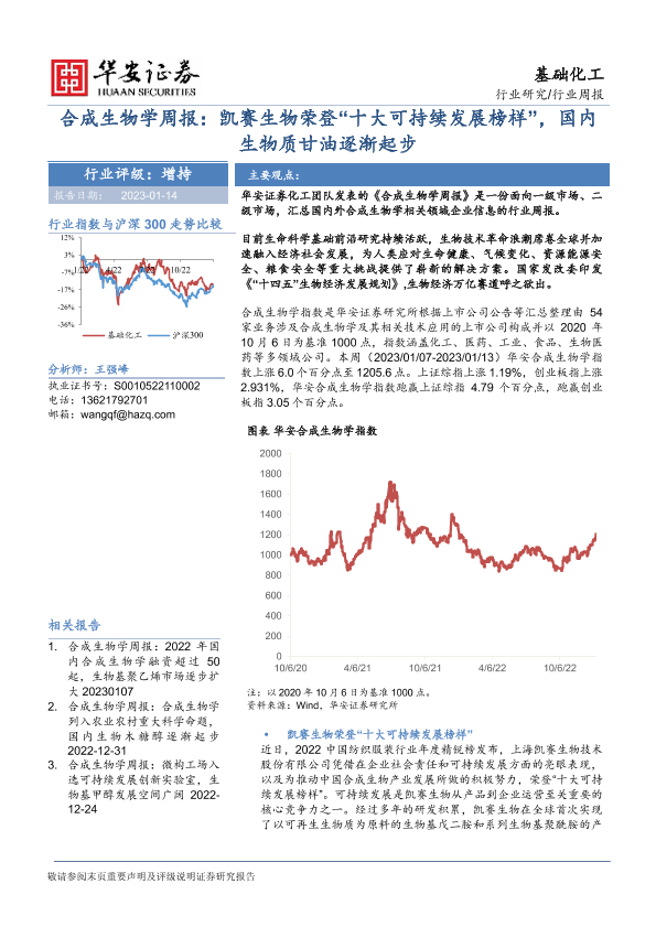 【华安证券】【20230114】合成生物学周报:凯赛生物荣登“十大可持续发展榜样”,国内生物质甘油逐渐起步-25页