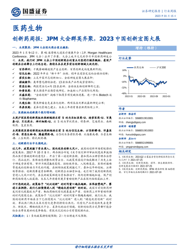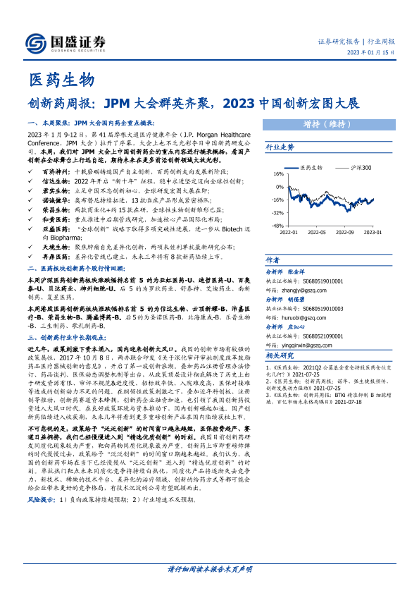 【国盛证券】【20230115】创新药周报:JPM大会群英齐聚,2023中国创新宏图大展-22页