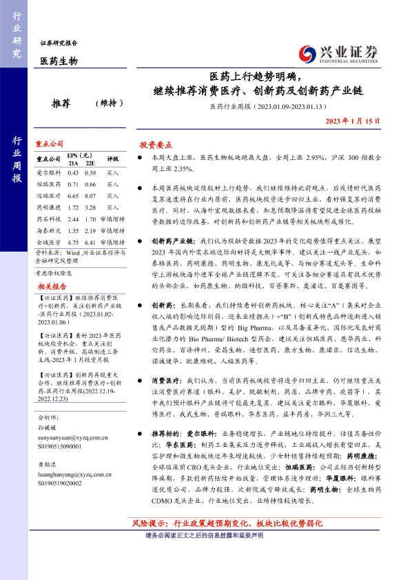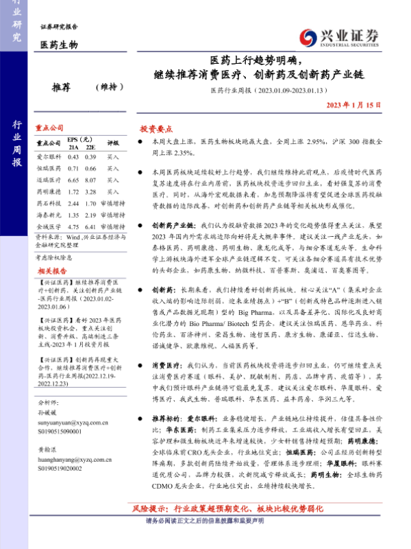 【兴业证券】【20230115】医药上行趋势明确,继续推荐消费医疗、创新药及创新药产业链-14页