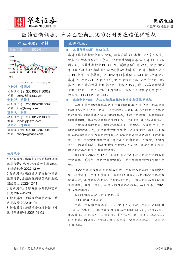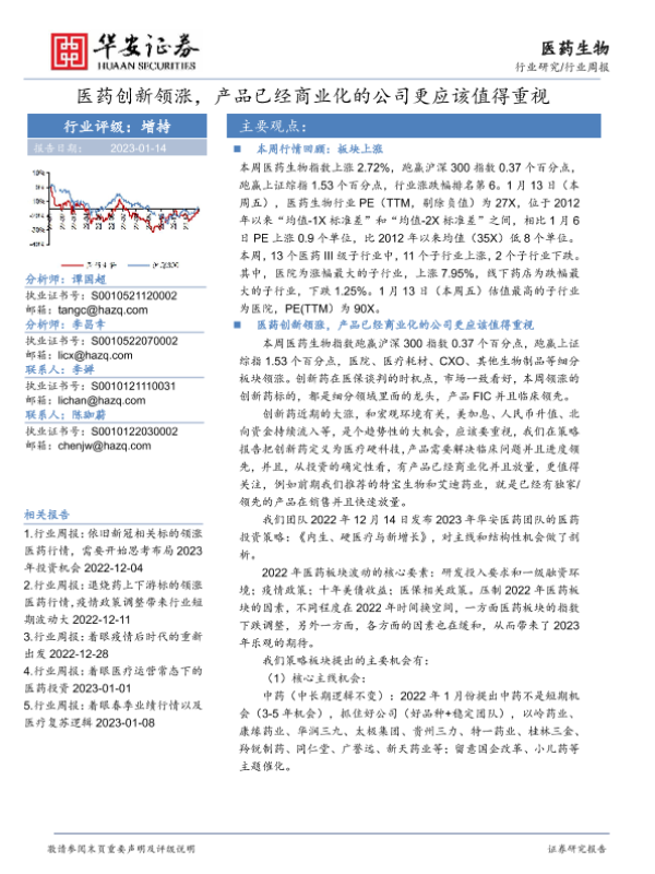 【华安证券】【20230114】医药生物行业周报:医药创新领涨,产品已经商业化的公司更应该值得重视-14页