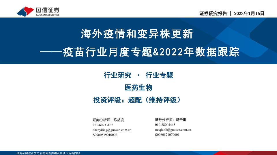 【国信证券】【20230116】海外疫情和变异株更新——疫苗行业月度专题&2022年数据跟踪-40页