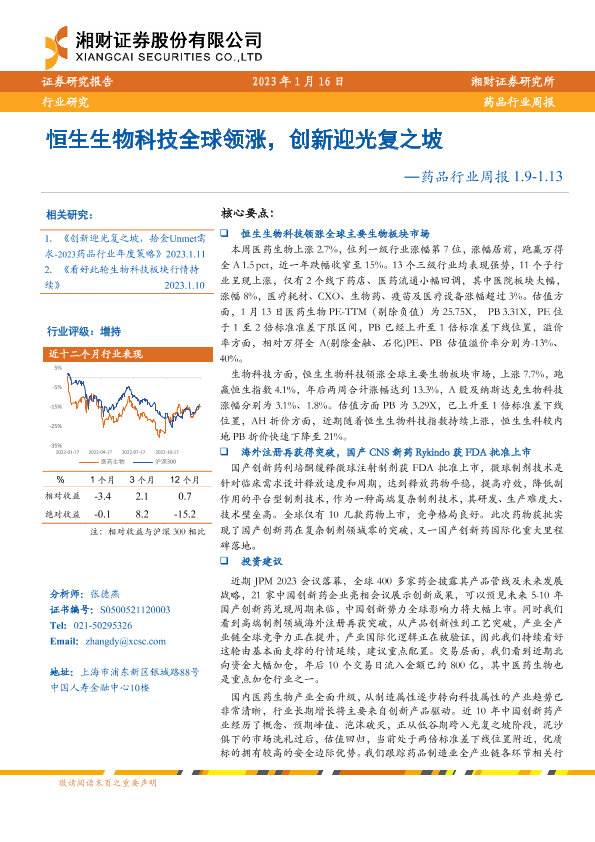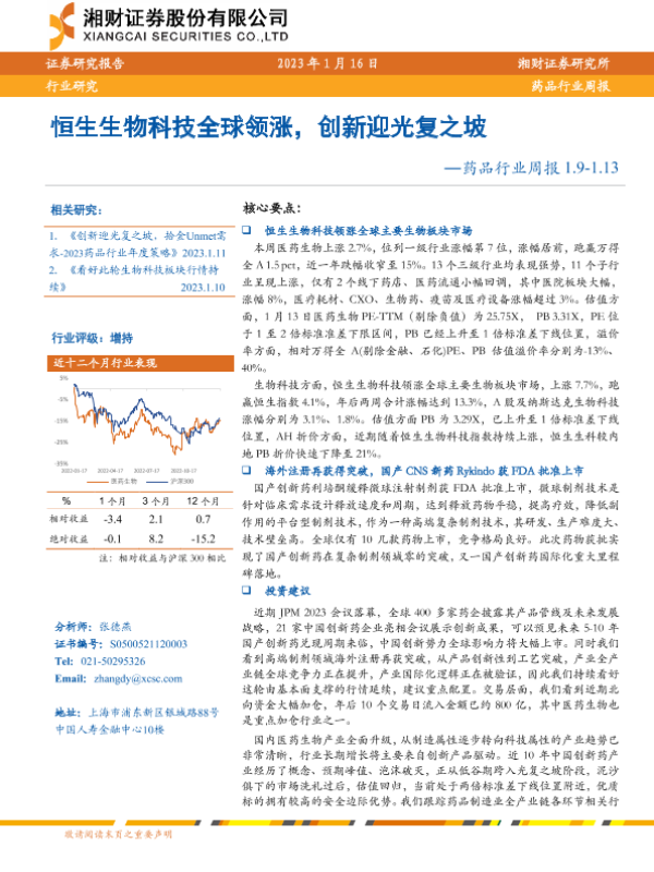 【湘财证券】【20230116】恒生生物科技全球领涨,创新迎光复之坡-13页