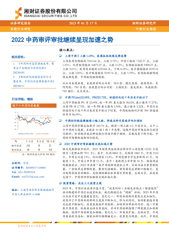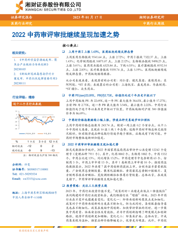 【湘财证券】【20230117】2023中药审评审批继续呈现加速之势-12页