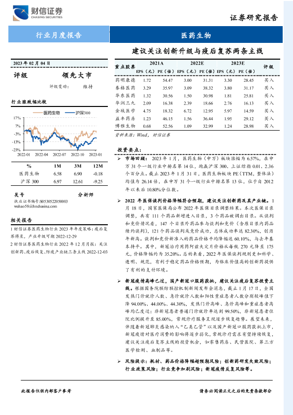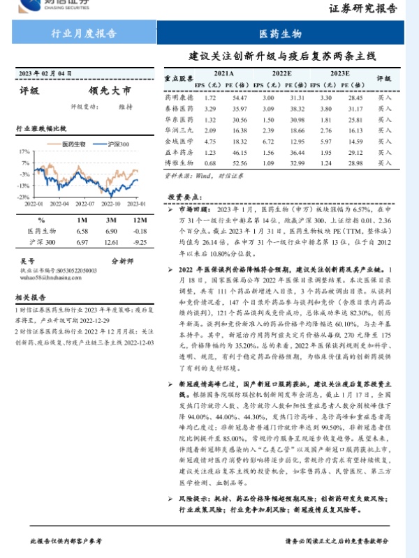 【财信证券】【20230204】医药生物行业月度报告:建议关注创新升级与疫后复苏两条主线-12页