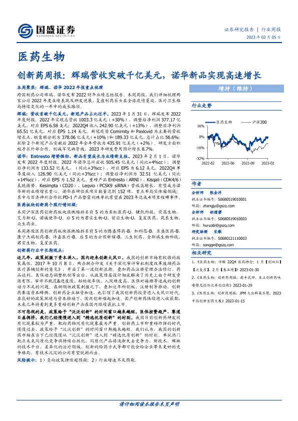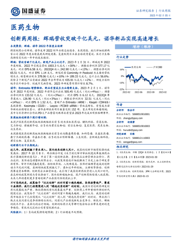 【国盛证券】【20230205】医药生物行业创新药周报:辉瑞营收突破千亿美元,诺华新品实现高速增长-30页