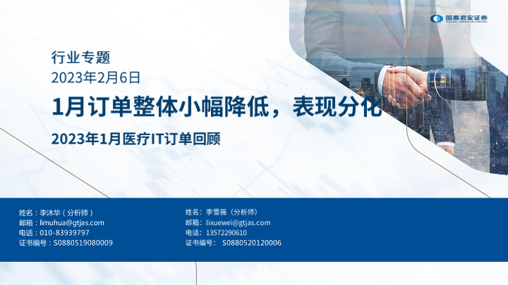 【国泰君安证券】【20230206】2023年1月医疗IT订单回顾-10页