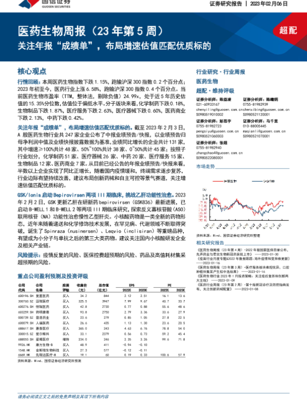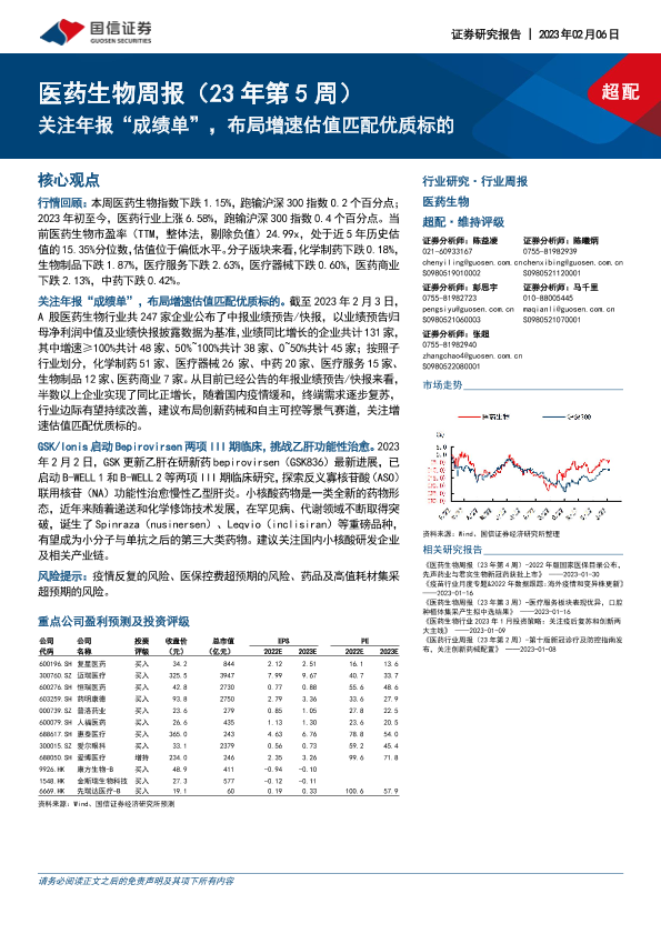 【国信证券】【20230206】医药生物周报:关注年报“成绩单”,布局增速估值匹配优质标的-13页