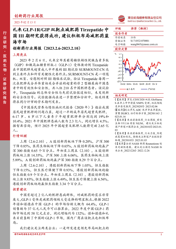 【东亚前海证券】【20230213】创新药行业周报:礼来GLP-1R GIP双靶点减肥药Tirzepatide中国III期研究获得成功-19页