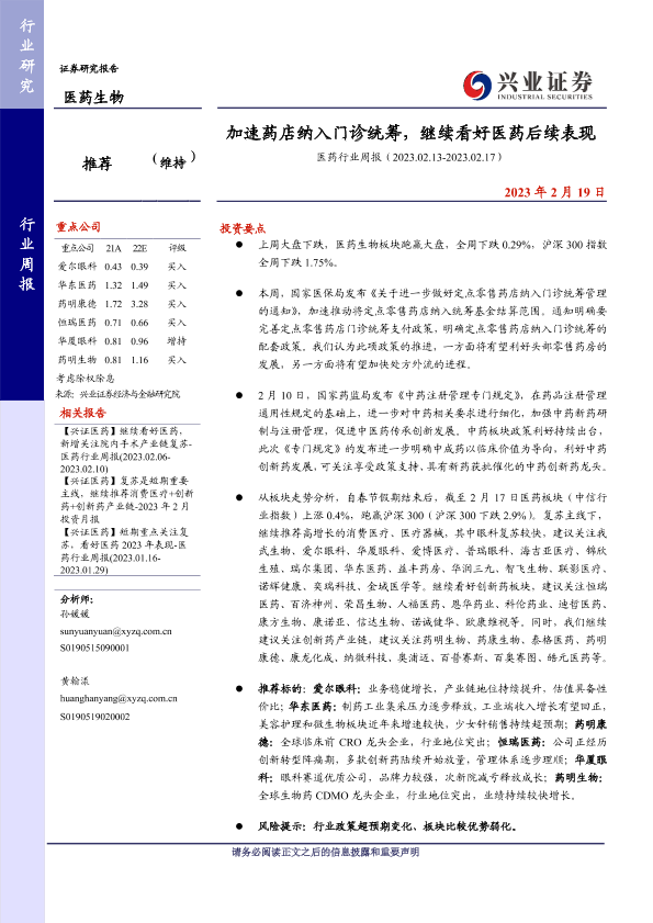 【兴业证券】【20230219】加速药店纳入门诊统筹,继续看好医药后续表现-13页