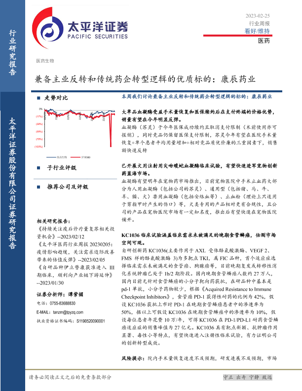 KC1036 医药生物 宠物药市场 康辰药业 血凝酶
