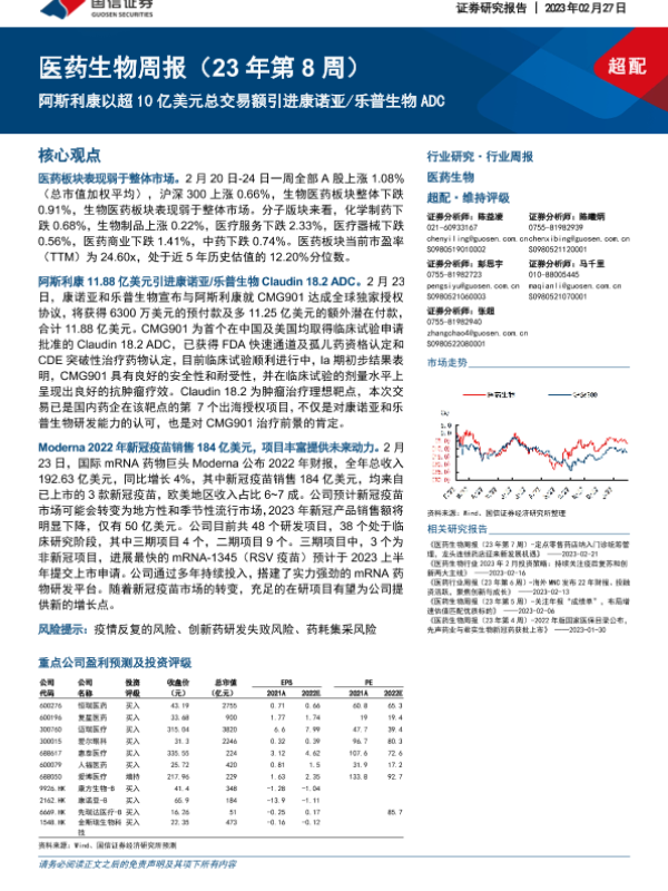 【国信证券】【20230227】医药生物周报:阿斯利康以超10亿美元总交易额引进康诺亚 乐普生物ADC-18页