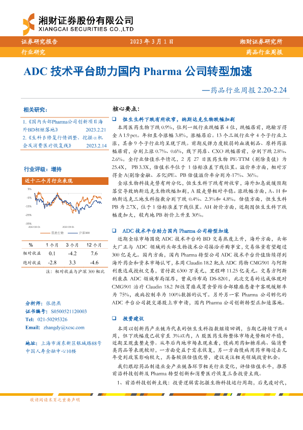 【湘财证券】【20230301】药品行业周报:ADC技术平台助力国内Pharma公司转型加速-13页