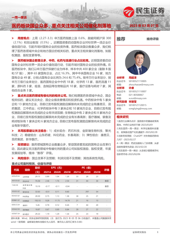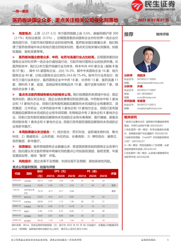 【民生证券】【20230307】医药板块国企众多,重点关注相关公司催化剂落地-11页