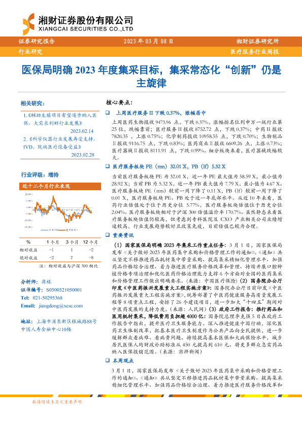 【湘财证券】【20230308】医疗服务行业周报:医保局明确2023年度集采目标,集采常态化“创新”仍是主旋律-12页