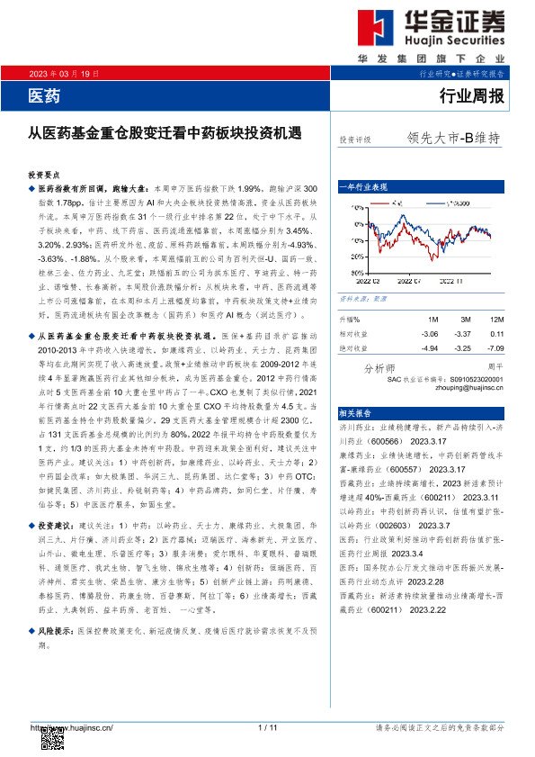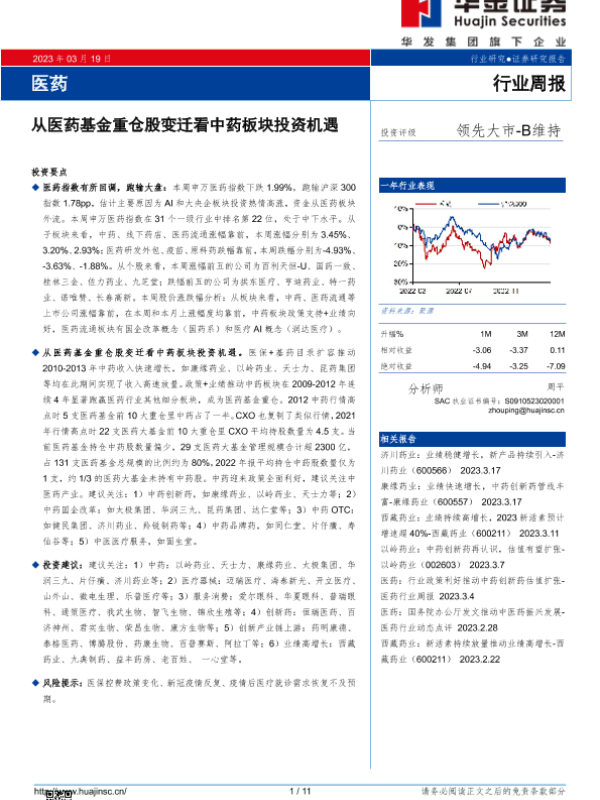 【华金证券】【20230319】从医药基金重仓股变迁看中药板块投资机遇-11页