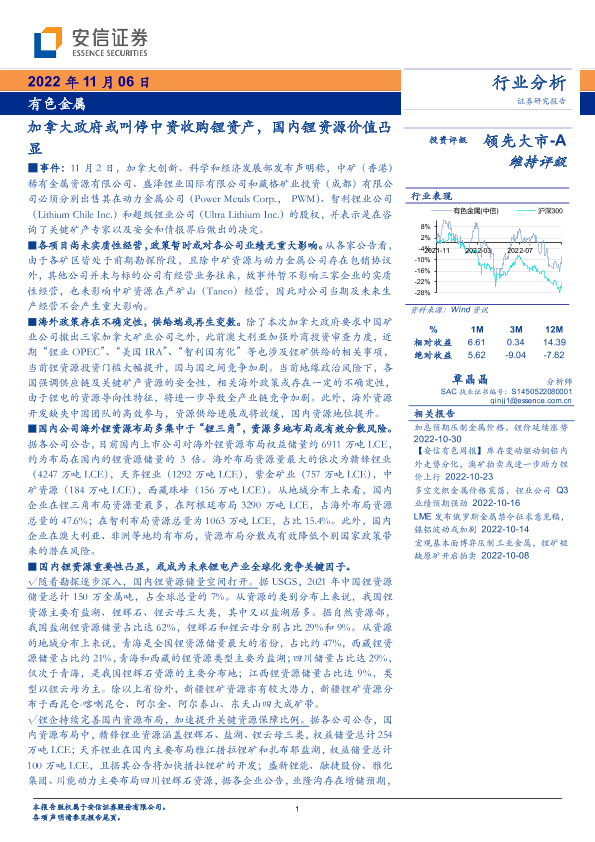 【安信证券】【20221106】有色金属行业分析:加拿大政府或叫停中资收购锂资产,国内锂资源价值凸显-18页