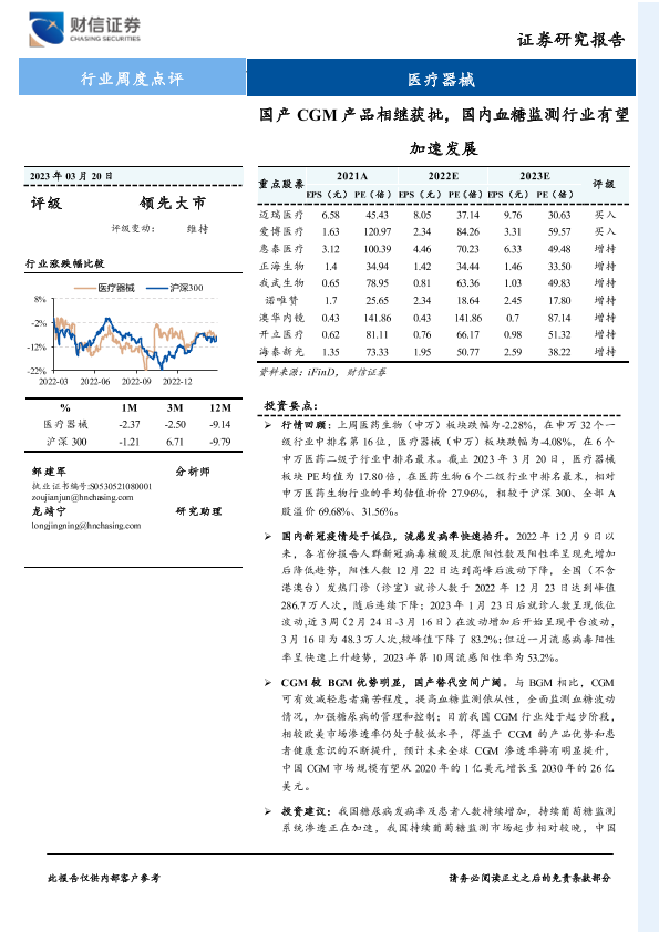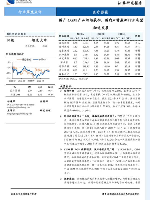 【财信证券】【20230320】国产CGM产品相继获批,国内血糖监测行业有望加速发展-12页