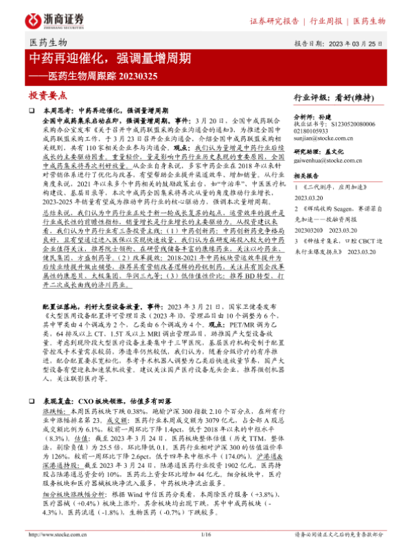 【浙商证券】【20230325】医药生物周跟踪:中药再迎催化,强调量增周期-16页