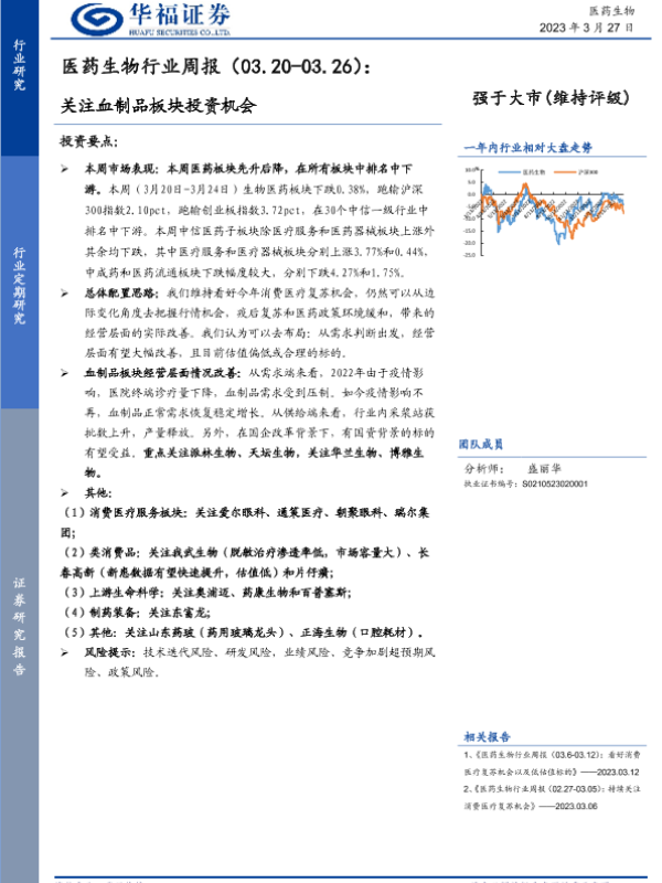 【华福证券】【20230327】医药生物行业周报:关注血制品板块投资机会-10页