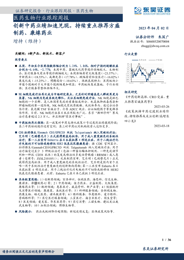 【东吴证券】【20230402】医药生物行业跟踪周报:创新中药业绩加速兑现,持续重点推荐方盛制药、康缘药业-36页