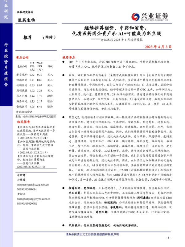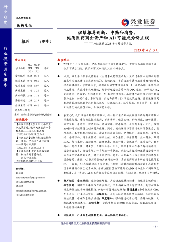 【兴业证券】【20230403】继续推荐创新、中药和消费,优质医药国企资产和AI+可能成为新主线-19页