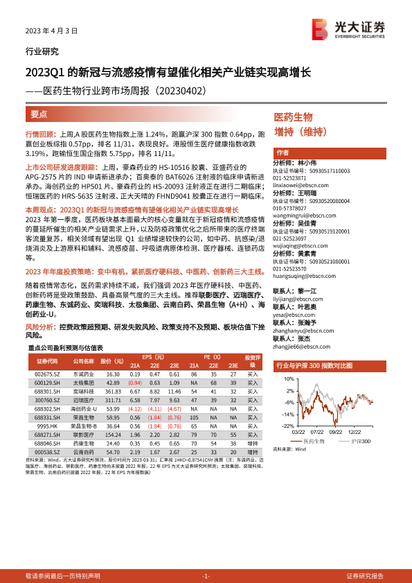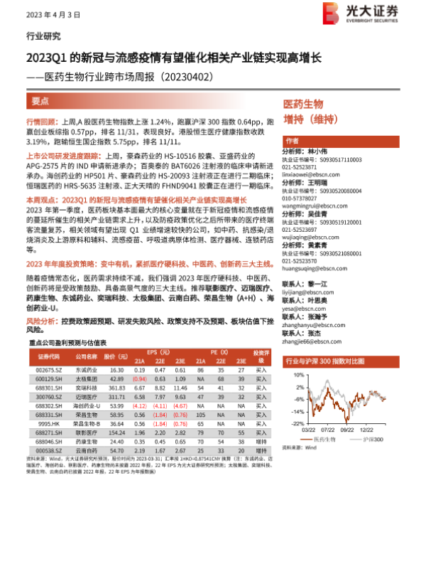 【光大证券】【20230403】2023Q1的新冠与流感疫情有望催化相关产业链实现高增长-22页