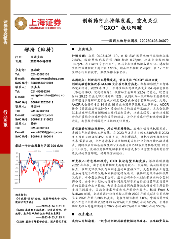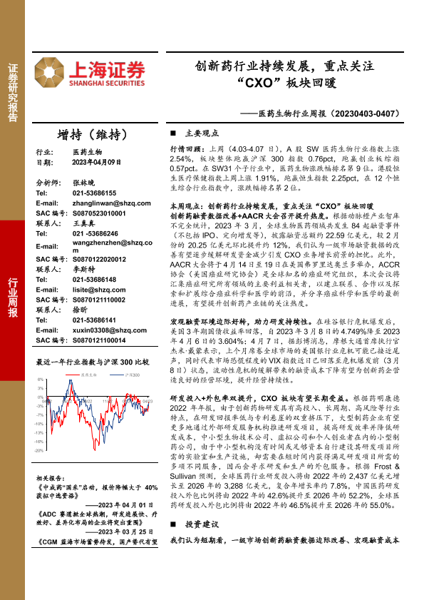 【上海证券】【20230409】医药生物行业周报:创新药行业持续发展,重点关注“CXO”板块回暖-23页