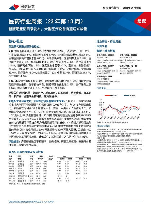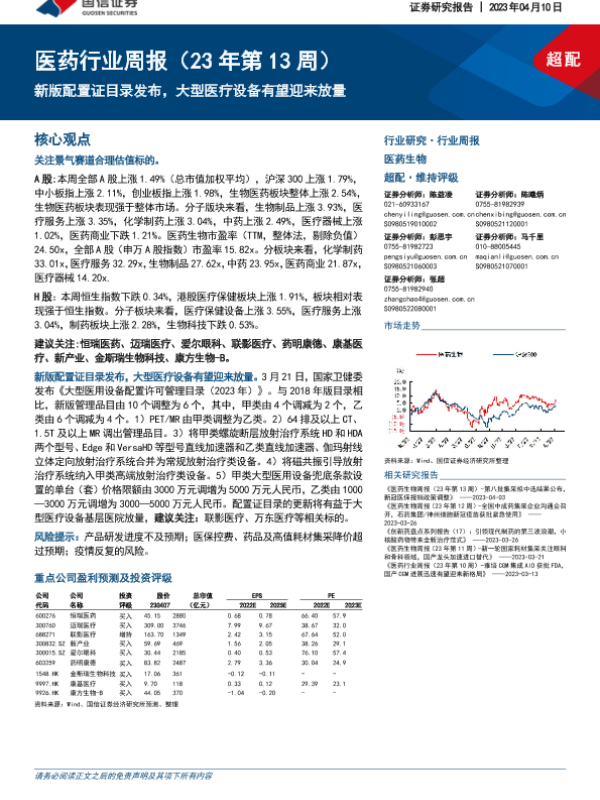 【国信证券】【20230410】医药行业周报:新版配置证目录发布,大型医疗设备有望迎来放量-12页