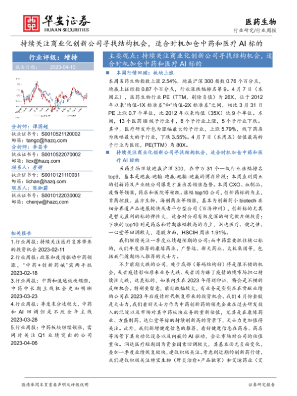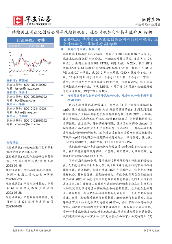 【华安证券】【20230410】医药生物行业周报:持续关注商业化创新公司寻找结构机会,适合时机加仓中药和医疗AI标的-27页