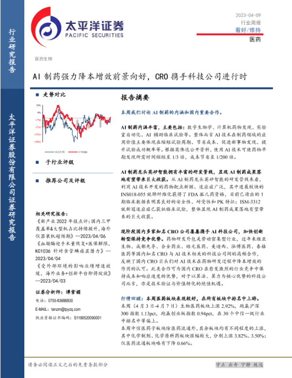 【太平洋证券】【20230409】AI制药强力降本增效前景向好,CRO携手科技公司进行时-22页