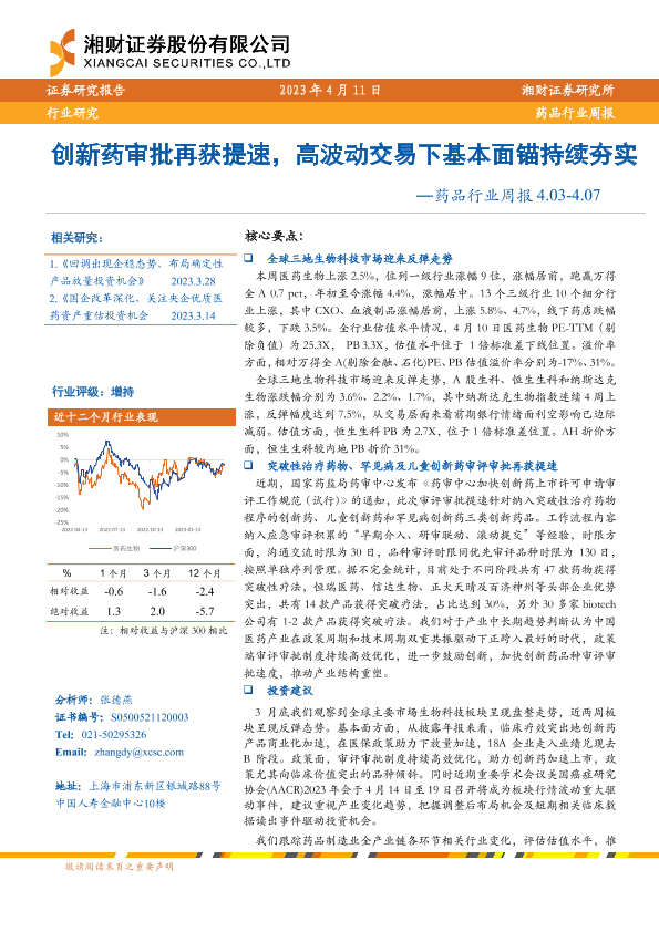 【湘财证券】【20230411】药品行业周报:创新药审批再获提速,高波动交易下基本面锚持续夯实-14页