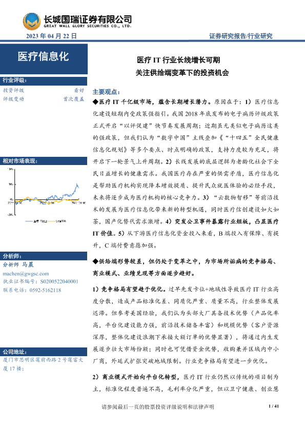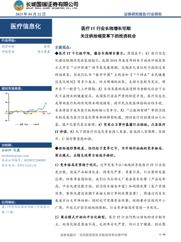 【长城国瑞证券】【20230422】医疗IT行业长线增长可期 关注供给端变革下的投资机会-41页