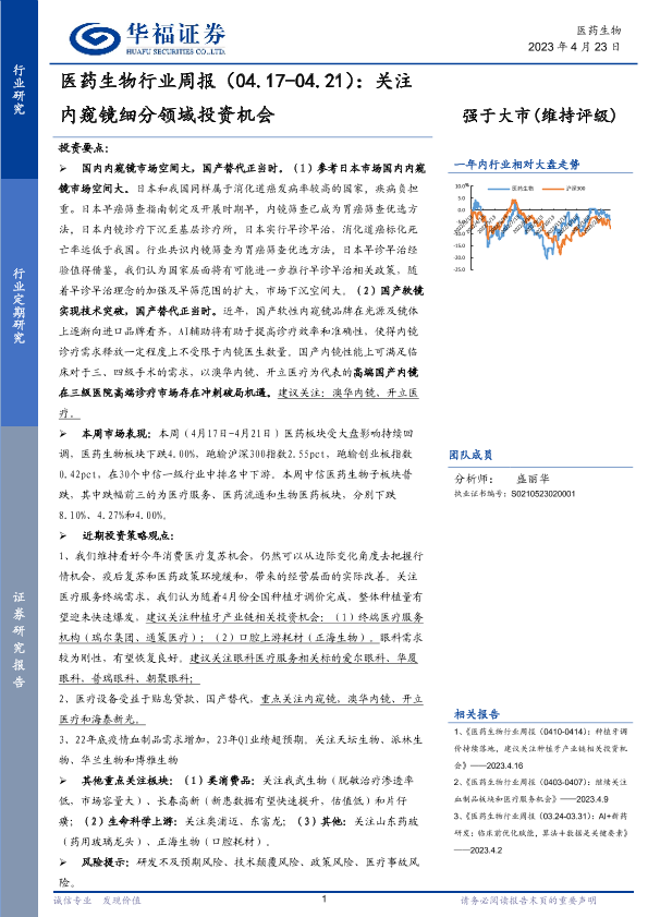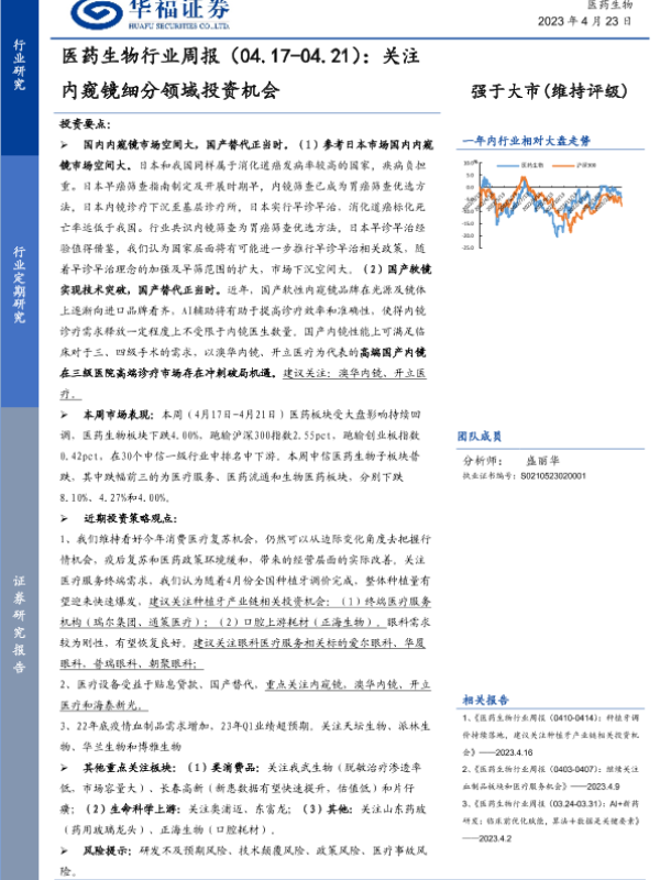 【华福证券】【20230423】医药生物行业周报:关注内窥镜细分领域投资机会-14页
